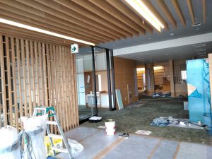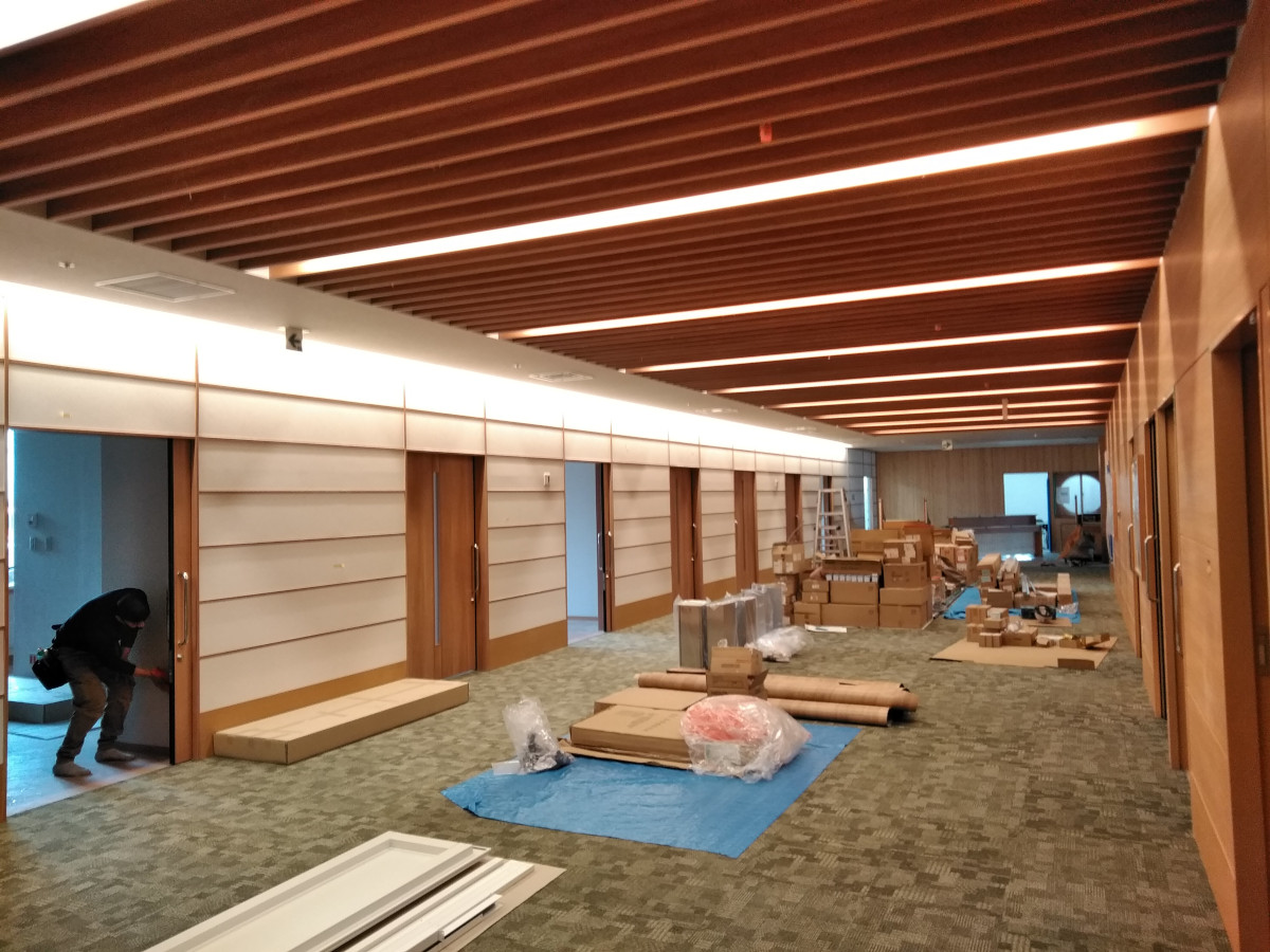 お知らせ 工事進捗 採用情報 工事進捗 5月13日 工事進捗 2021/05/13 建築進捗です。 外観です。足場が取り除かれ、外壁ができあがりました。駐車場などの屋外を整備しています。 エントランスから待合室、受付カウンターを見た様子です。木目が目立つデザインとなっています。 待合ホールです。壁紙が貼られ、床カーペットも敷かれました。 完成が間近のようです。 « 前ページ一覧に戻る 次ページ »